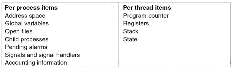 * kolom pertama berisi beberapa item yang dibagi oleh semua thread dalam sebuah proses.