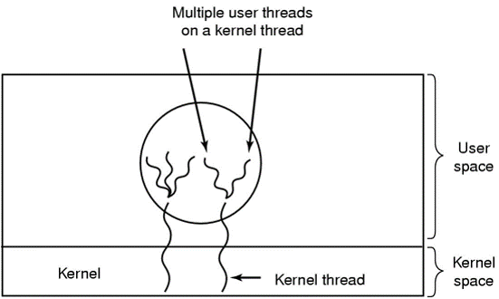 *thread tingkat multiplexing user ke thread tingkat kernel.